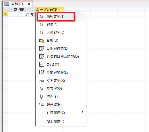 Step.2 點擊 [按一下已新增] > [簡短文字] > 新增欄位名稱
