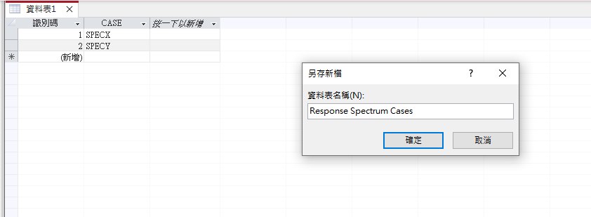 需由使用者於mdb/accdb檔內手動補填 [Response Spectrum] 資料表,再以RCAD ASCO開啟mdb檔案,即可避免此NG報表。