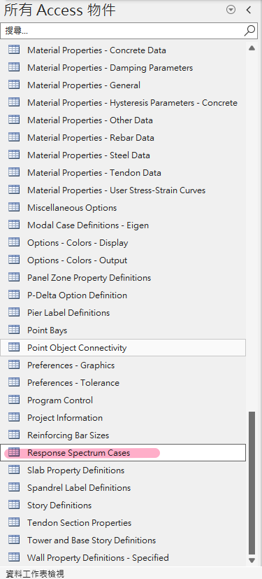 需由使用者於mdb/accdb檔內手動補填 [Response Spectrum] 資料表,再以RCAD ASCO開啟mdb檔案,即可避免此NG報表。